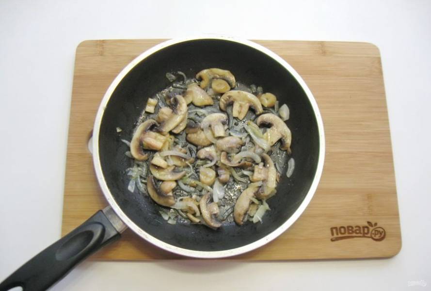 Жарьте грибы с луком, перемешивая, 6-7 минут до готовности.