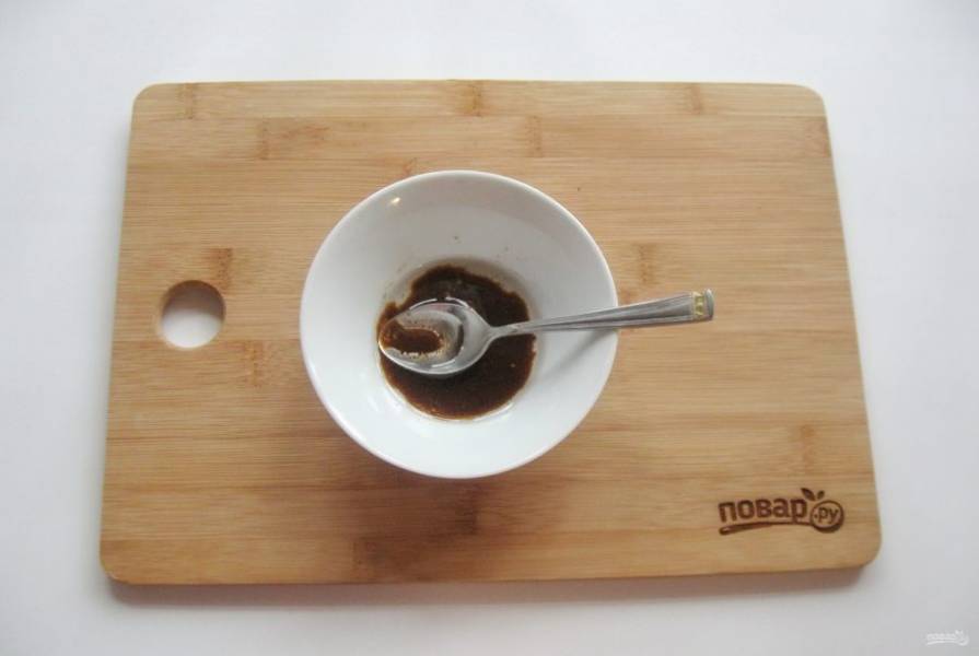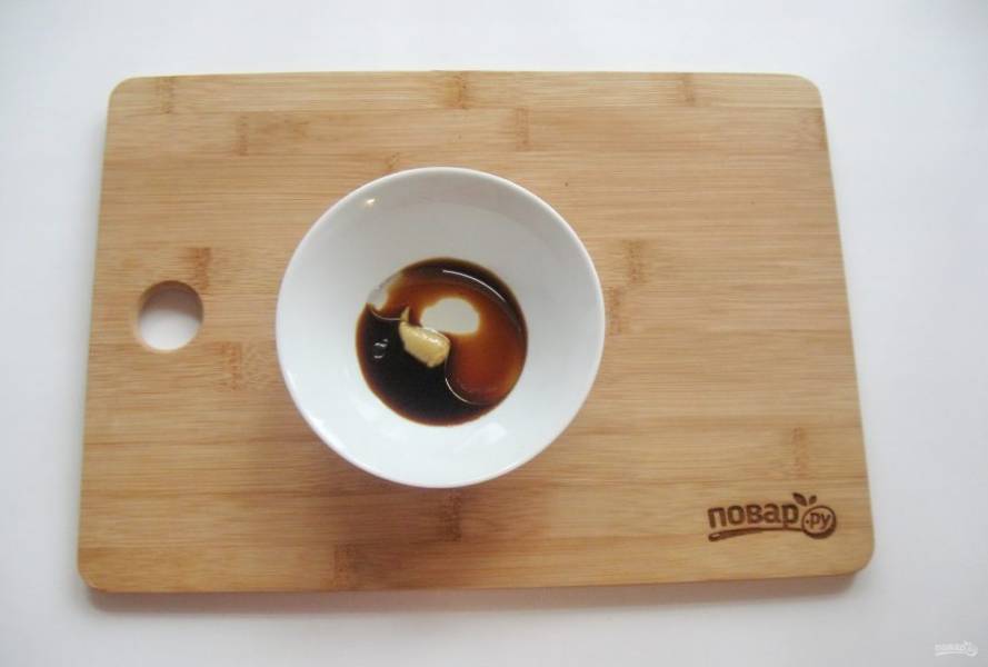 В мисочку налейте оливковое или подсолнечное масло, соевый соус, добавьте горчицу. Остроту горчицы выбирайте сами.