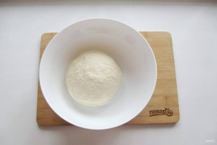 Накройте миску полотенцем или пищевой пленкой. Поставьте в теплое место. Через час-полтора тесто увеличится в объеме и будет готово к работе.