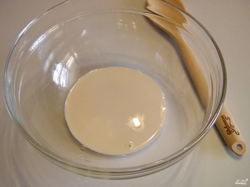 Возьмите немного горячей воды и растворите в ней дрожжи.