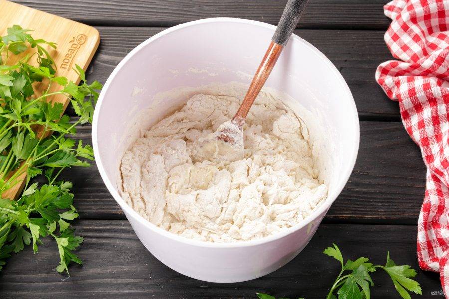 Добавляйте муку, пока тесто не станет достаточно густым.