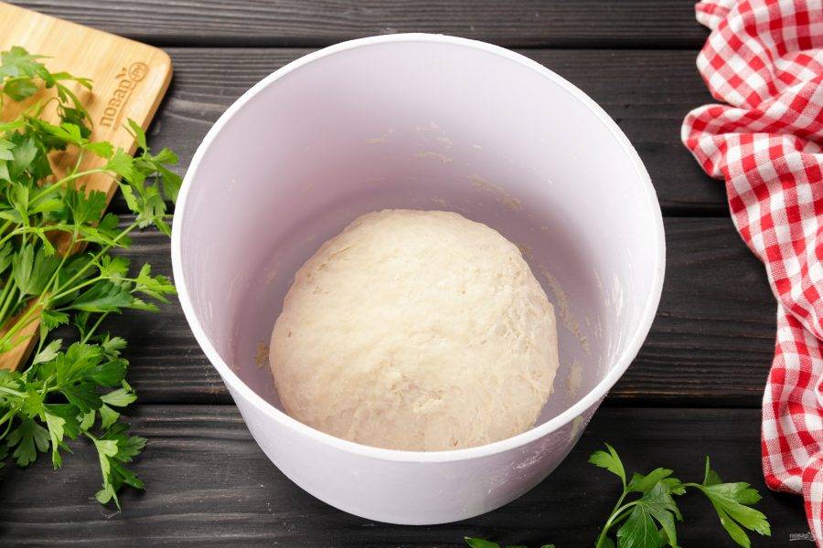 Муки у вас может уйти больше или меньше, чем у меня. Ориентируйтесь по консистенции теста. С каждой минутой оно будет становиться все эластичней и мягче. Готовое тесто соберите в шар, накройте полотенцем или пленкой. Оставьте тесто на 20 минут отдохнуть. За это время в нём хорошо разовьется клейковина, содержащаяся в муке, и тесто станет более эластичным.