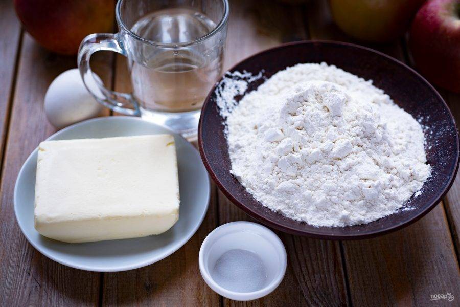 Подготовьте ингредиенты для приготовления теста. Масло сливочное должно быть хорошо охлажденным, как и вода.