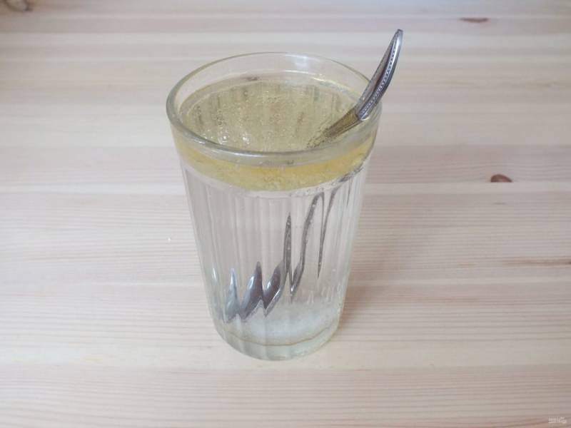В стакан с холодной минеральной водой добавьте соль, сахар и растительное масло. Размешайте.