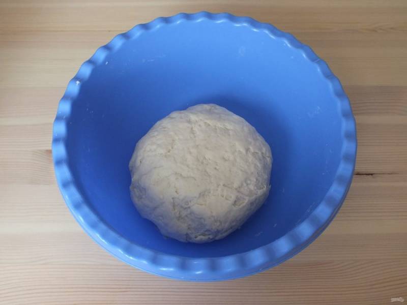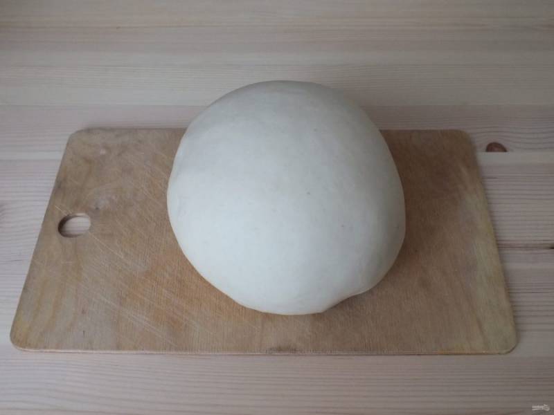 Как только тесто собралось в ком, перенесите его на рабочую поверхность и еще помесите 1-2 минуты. После накройте полотенцем и оставьте на 15 минут.