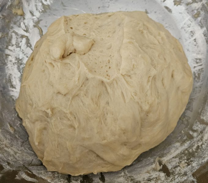 3. Теперь добавляем растительное масло, и понемногу домешиваем муку. Должно выйти мягкое тесто, которое не липнет к рукам.