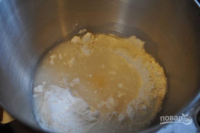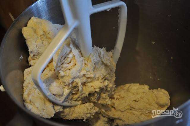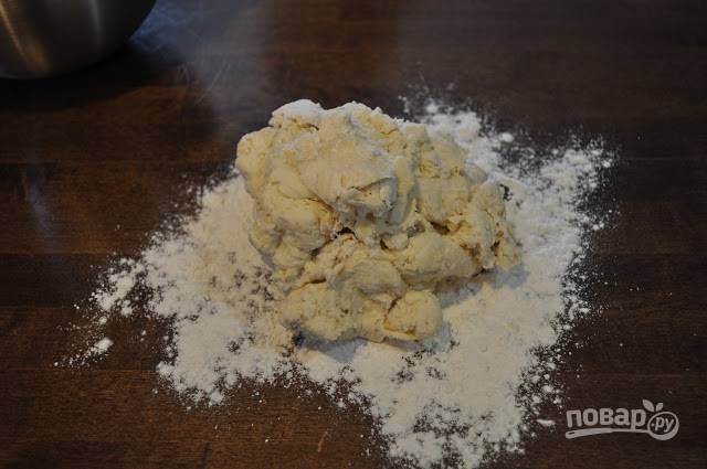 3. Присыпьте стол мукой, выложите тесто и месите руками не менее 5 минут.