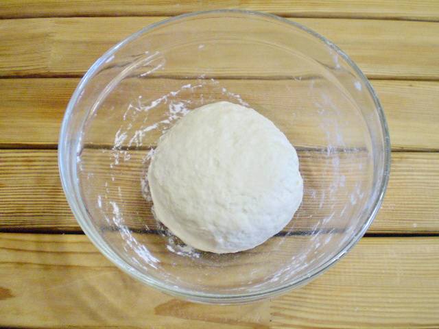 5. Когда вся мука будет собрана в ком, мы получаем плотное, упругое тесто на пельмени.
