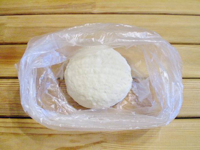 6. Берем пакет, кладем пельменное тесто отдохнуть на 30 минут в холодильник. После холодильника оно станет еще более эластичное, податливое, мягкое. Готовое тесто на пельмени можно использовать для различной начинки.