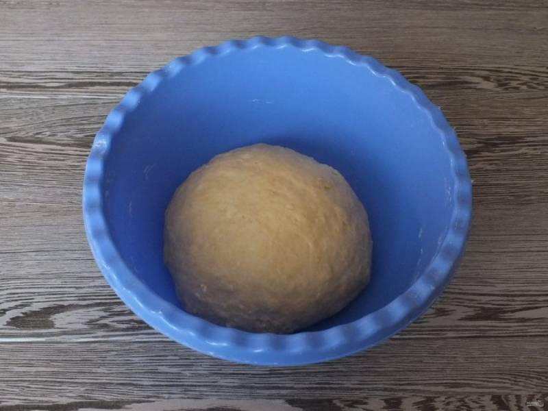 Теперь добавляйте частями оставшуюся муку, пока тесто не соберется в комок. Оно должно получиться мягким и пластичным. Накройте полотенцем и оставьте на 40 минут при комнатной температуре.