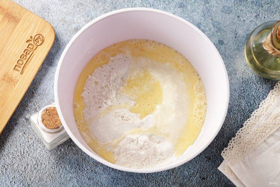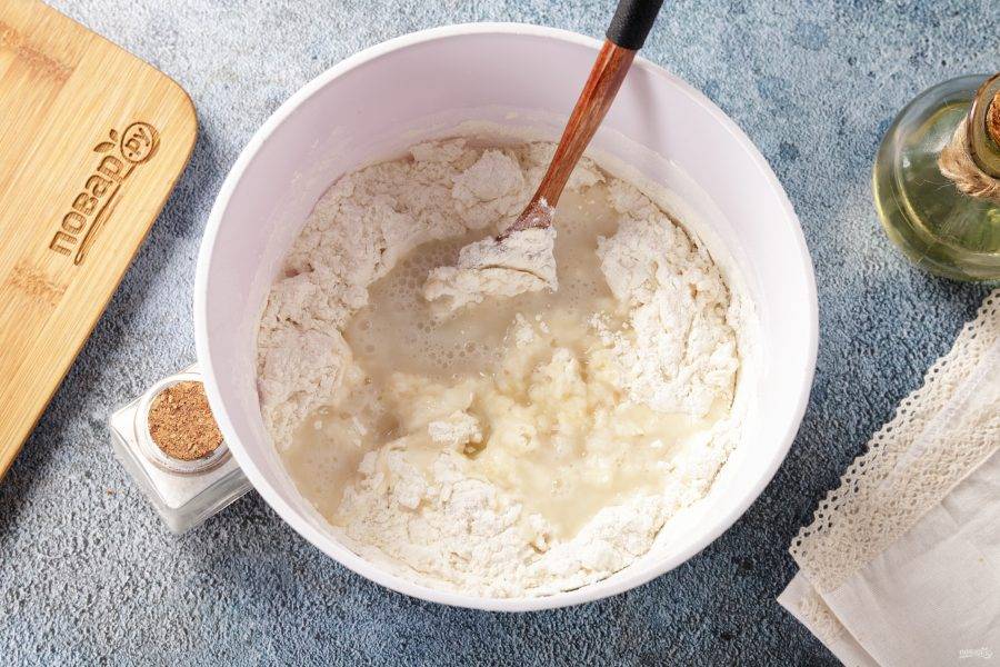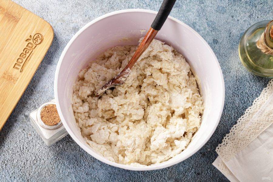 Затем вымесите тесто руками ещё раз. Оно станет более эластичное.