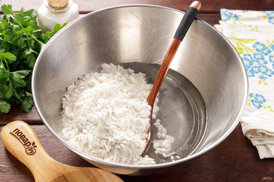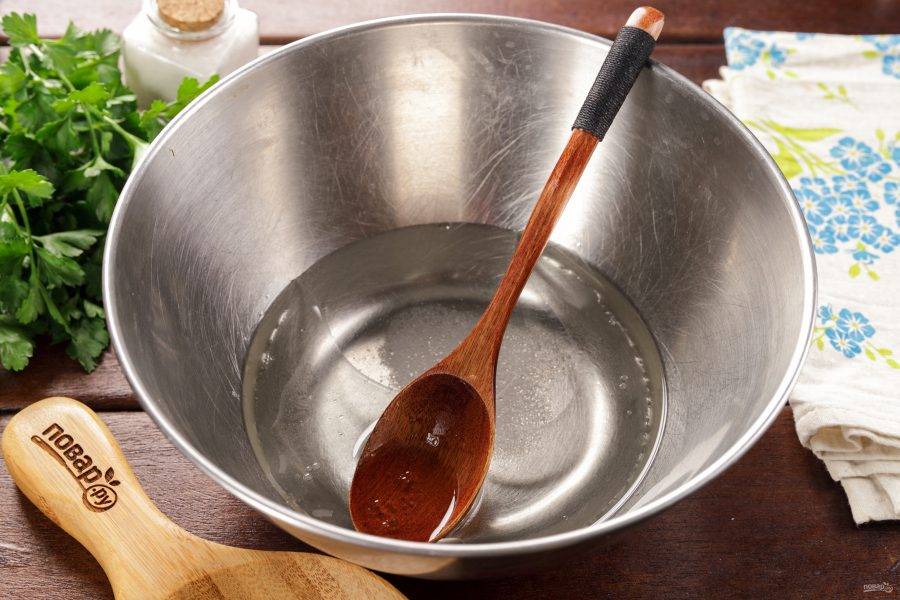 В глубокую миску налейте воду и растительное масло. Добавьте соль.