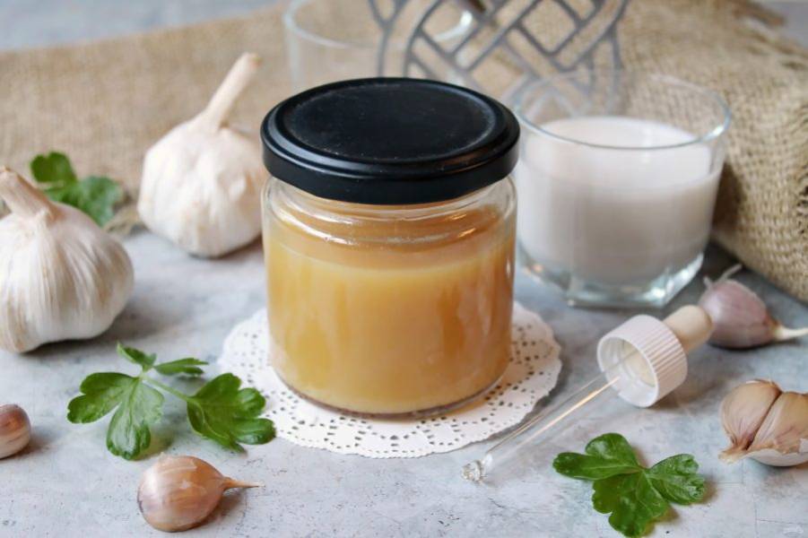 Выложите кашицу из чеснока в банку и залейте медицинским спиртом. Уберите банку в темное, сухое место и дайте настояться в течение 10 дней.