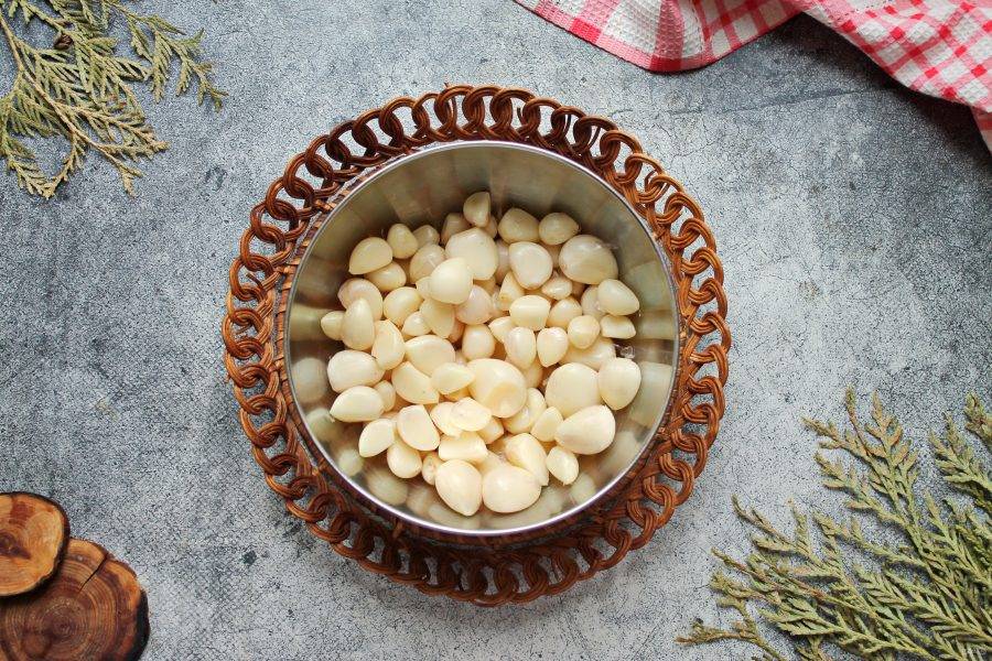 Дольки чеснока тщательно вымойте и полностью обсушите зубчики на бумажном полотенце.