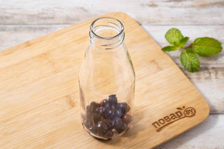 Также можно повторно ферментировать напиток для усиления газированности и дополнительного вкуса. Я буду добавлять черную смородину смородину. Потребуется примерно 5-7 ягод на бутылку. Разложите ягоду в бутылки.