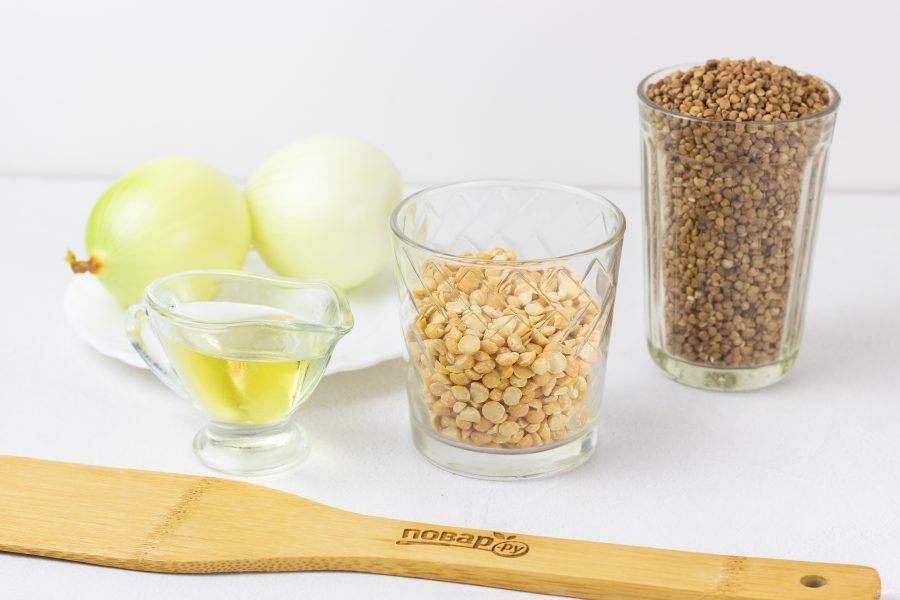 Подготовьте все основные ингредиенты. Лук очистите и помойте.