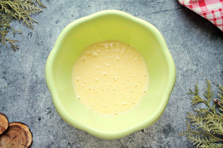 Поставьте миску на водяную баню и взбивайте массу до пышной, светлой массы.
