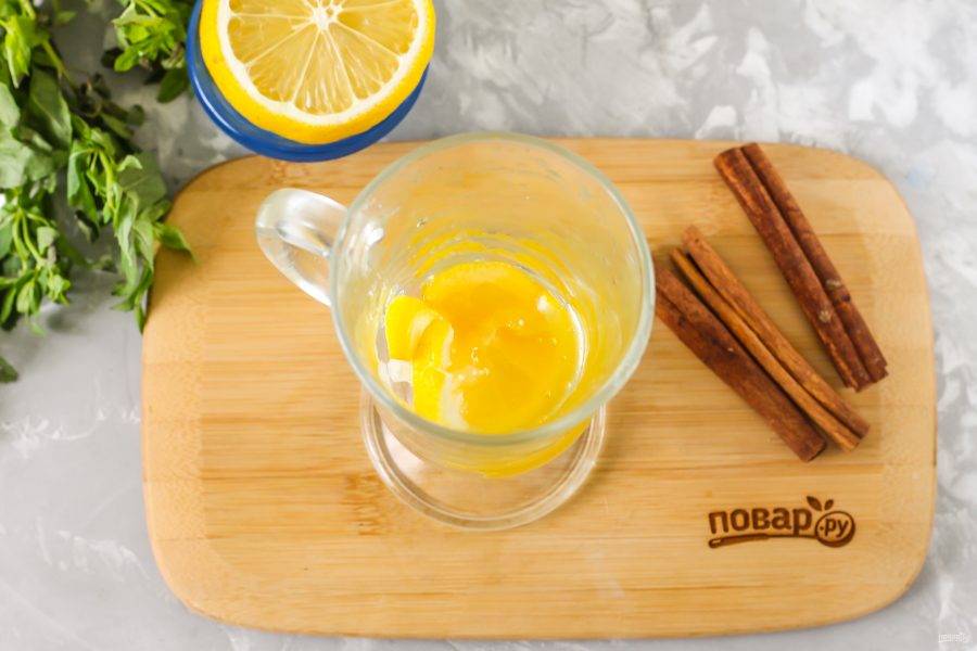 В высокий айриш-бокал или в чашку выложите два ломтика лимона, из еще двух выжмите сок. Добавьте цветочный мёд по вкусу. Его можно заменить сахарным песком, если у вас аллергия на такой подсластитель.