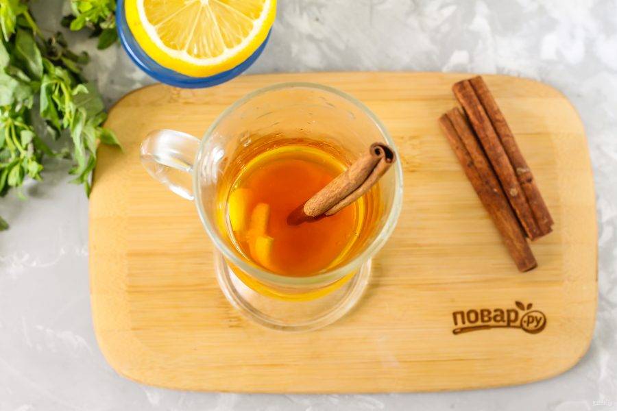 Влейте доверху в стакан горячий свежезаваренный чай. "Горячий Тодди" полностью готов!