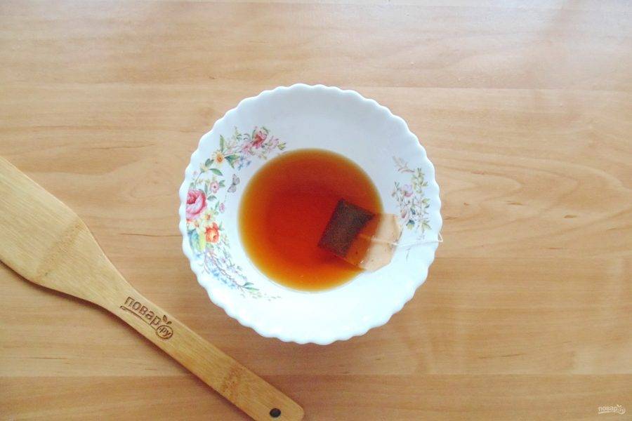 Один пакетик чая залейте кипятком и дайте постоять 4-5 минут.