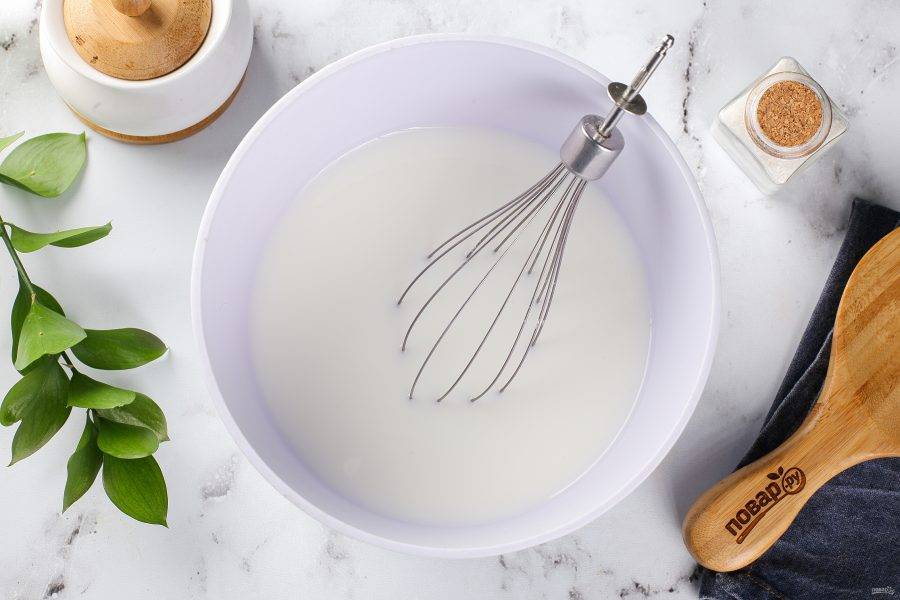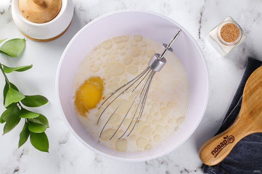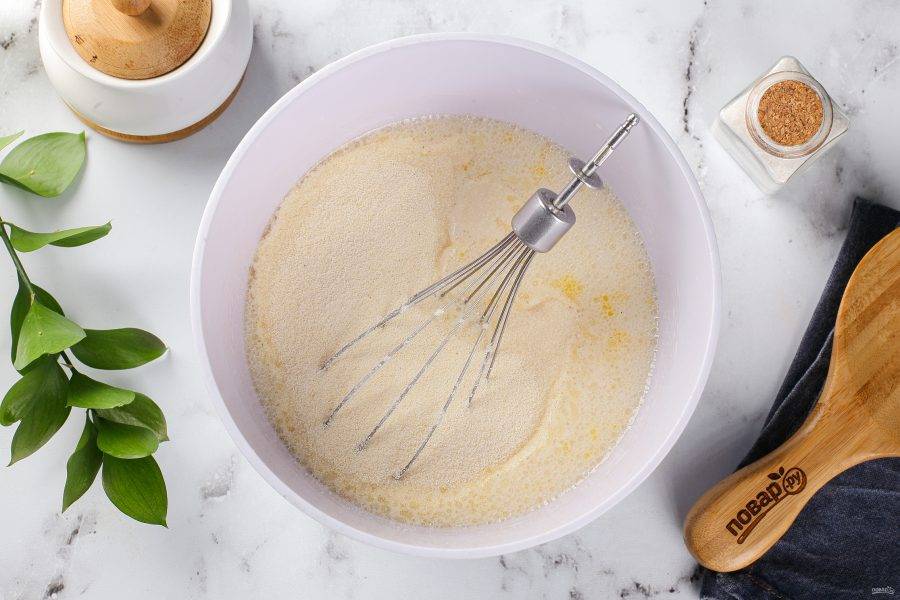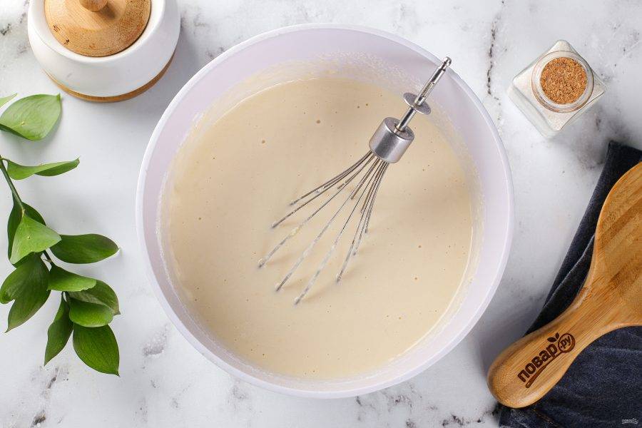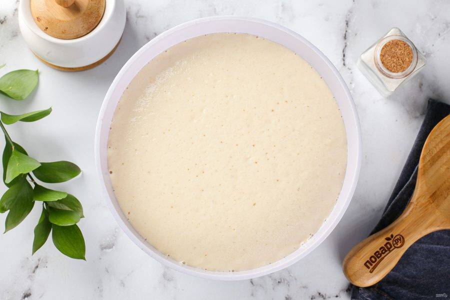Перемешайте всё до однородного состояния. Накройте миску полотенцем и оставьте в тёплом месте на 1 час.