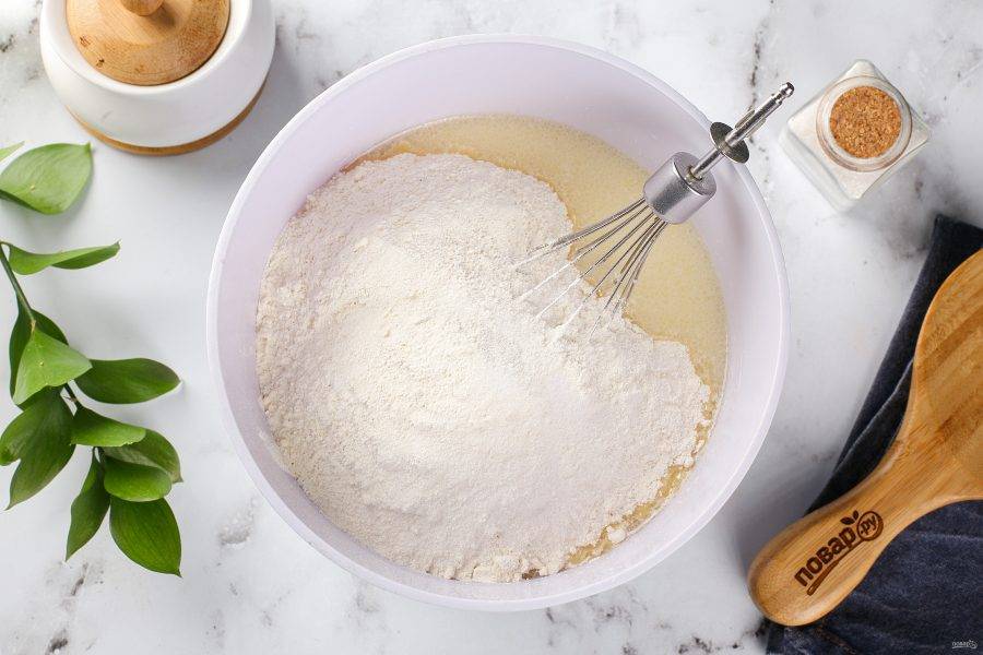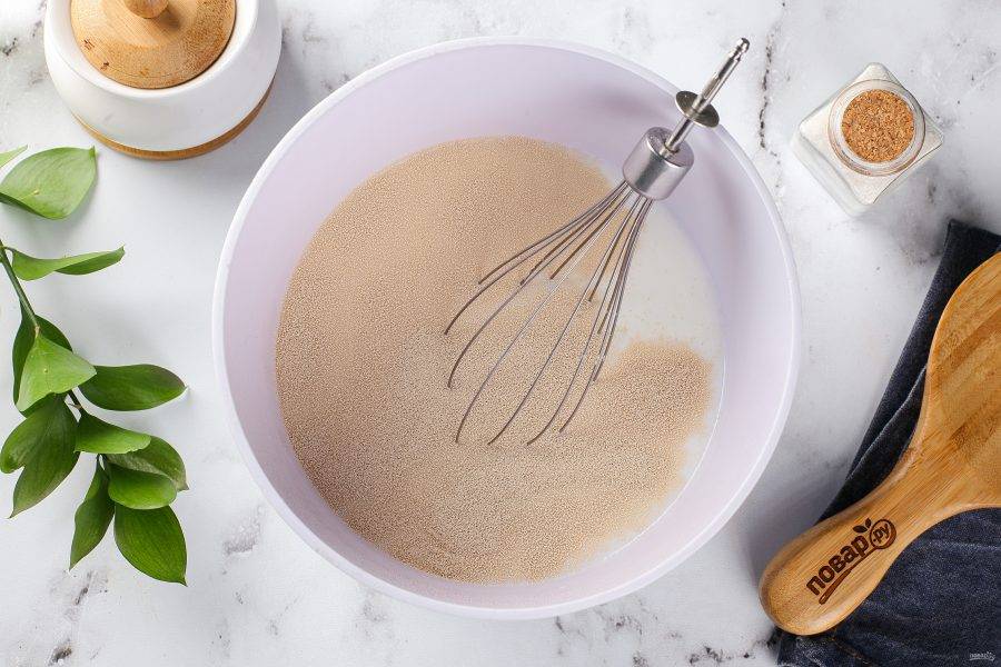 Затем добавьте сухие дрожжи и перемешайте всё ещё раз.