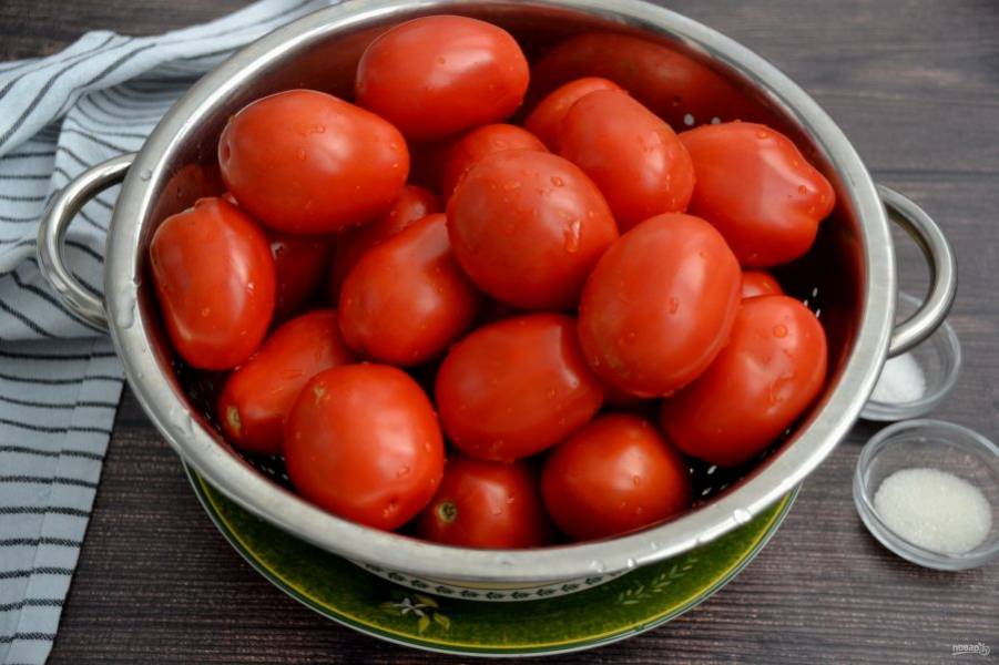 Подготовьте ингредиенты, отберите помидоры без признаков порчи.