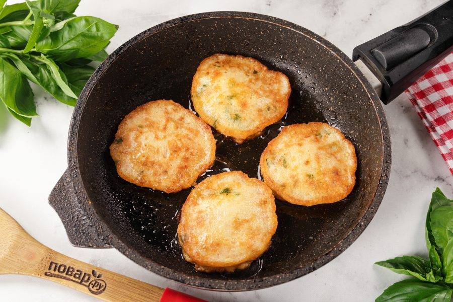 Разогрейте сковороду с маслом. Выкладывайте тесто ложкой и обжаривайте до готовности с обеих сторон на среднем огне.