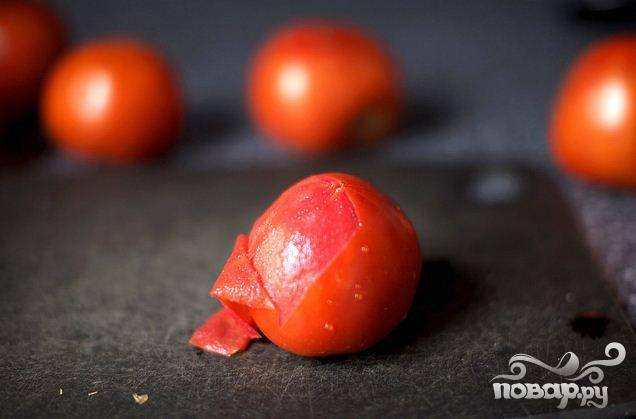 1. Довести кастрюлю с водой до кипения. Сделать небольшой надрез в форме креста в нижней части каждого помидора. Опустить помидоры в кипящую воду на 10-30 секунд, а затем либо промыть под холодной водой, либо поместить в чашу с ледяной водой.