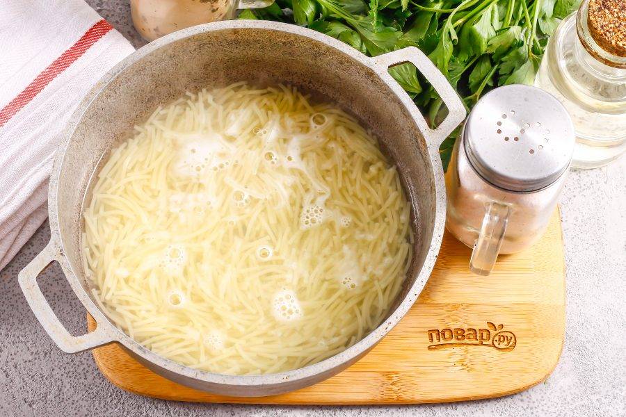 Отварите вермишель в горячей воде примерно 7-8 минут практически до готовности.
