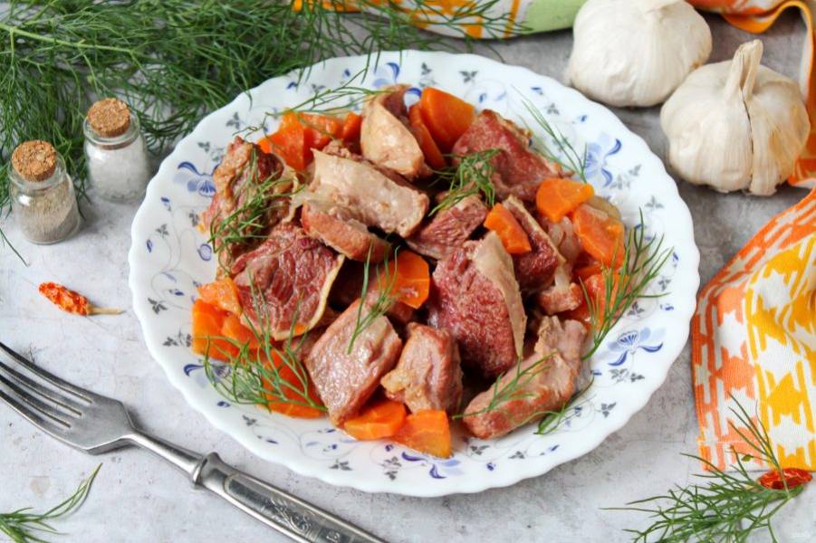 Поставьте кастрюлю на медленный огонь, закройте крышкой и томите в течение 5-6 часов до мягкости.