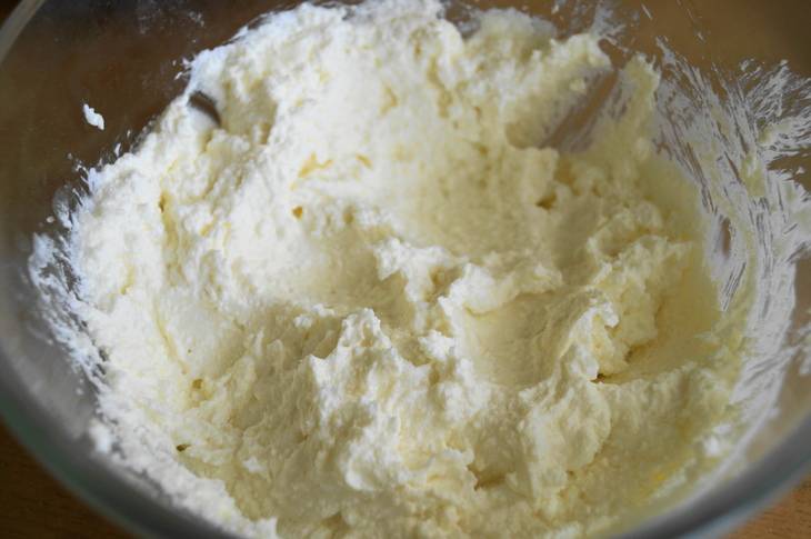 Тщательно перемешиваем творог с сахаром, ванилином и сметаной.