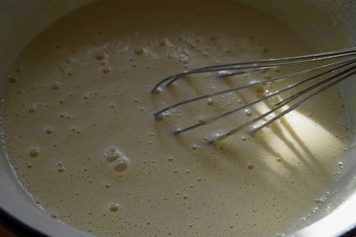 Постоянно помешивая, понемногу добавляем сначала молока, потом растительного масла, потом муки.