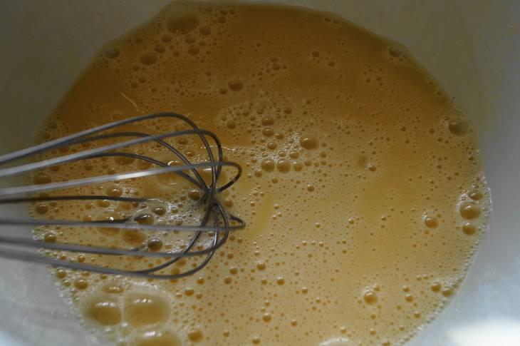 Готовим тесто. Взбиваем в миске яйца, добавляем сахара.