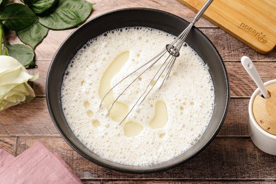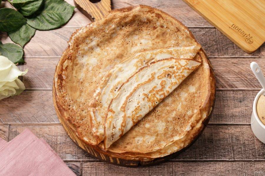 Готовые блинчики складывайте стопочкой, по желанию смазывая растопленным сливочным маслом.