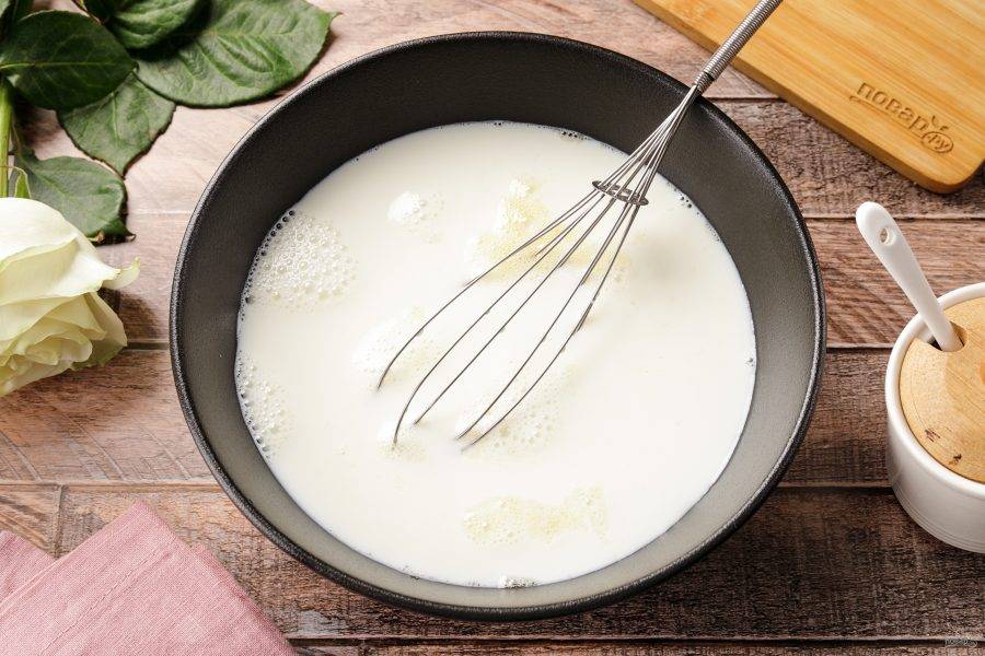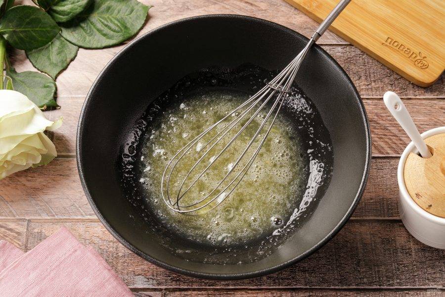 В глубокой миске соедините яйцо, соль и сахар. Взбейте, но без фанатизма.
