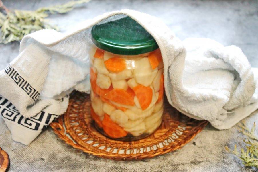 Банки плотно закройте крышками, переверните банки вверх дном и укутайте до полного остывания.