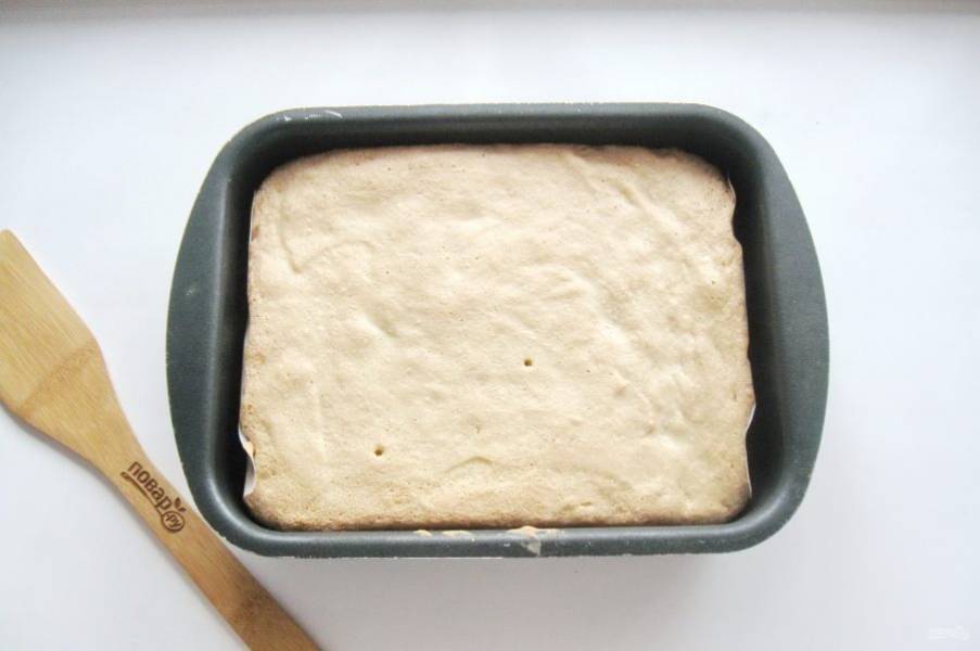 Выпекайте корж при температуре 170 градусов 35-40 минут. Время выпечки зависит от вашей духовки. Готовность проверяйте деревянной палочкой.