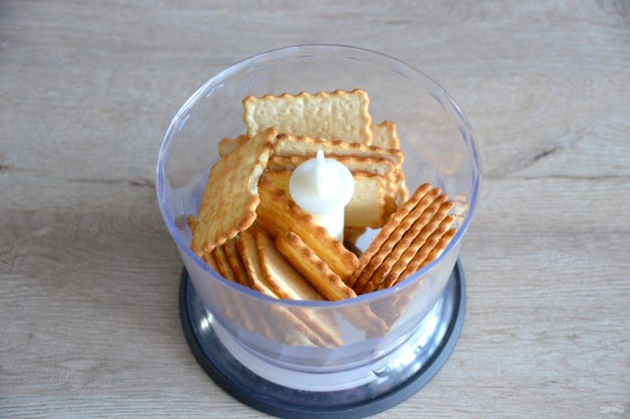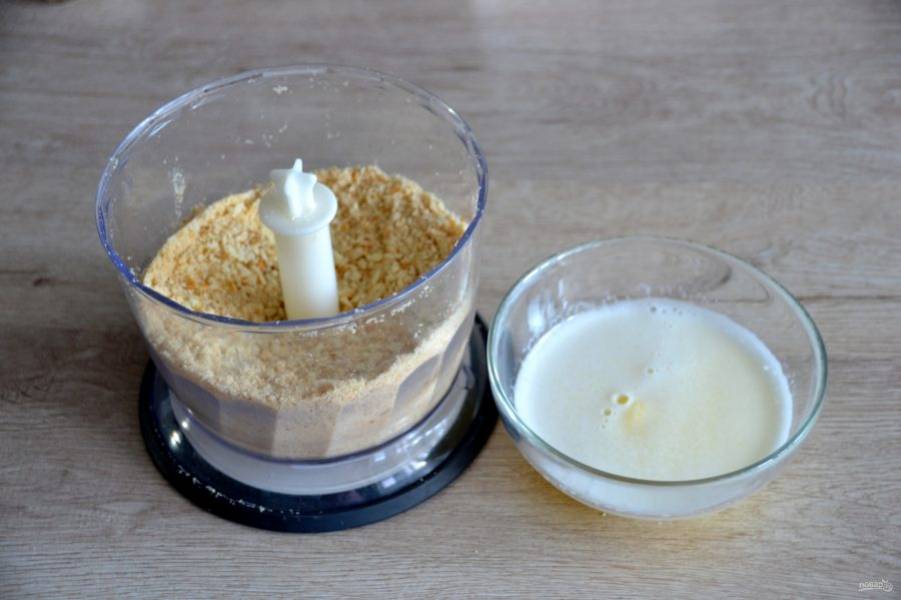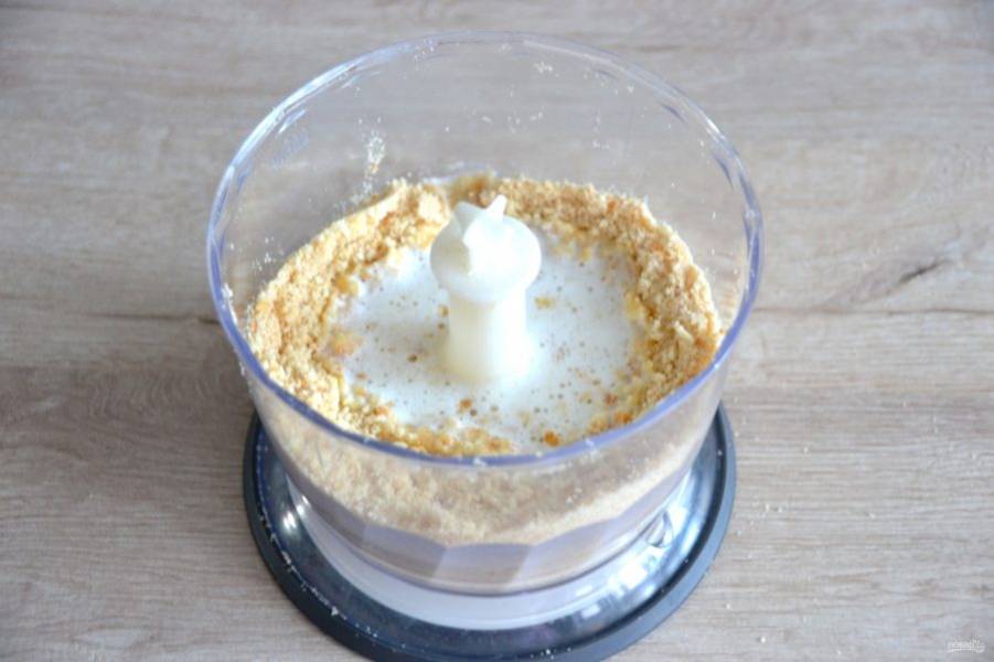 Выложите печенье в чашу блендера, измельчите в крошку.