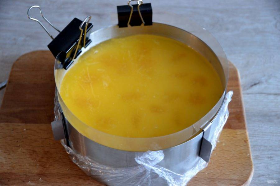 Залейте апельсиновым желе верх торта, уберите в холодильник на 2 часа для окончательного застывания.