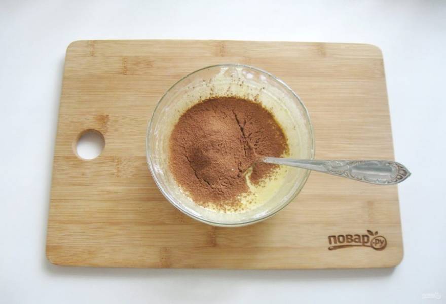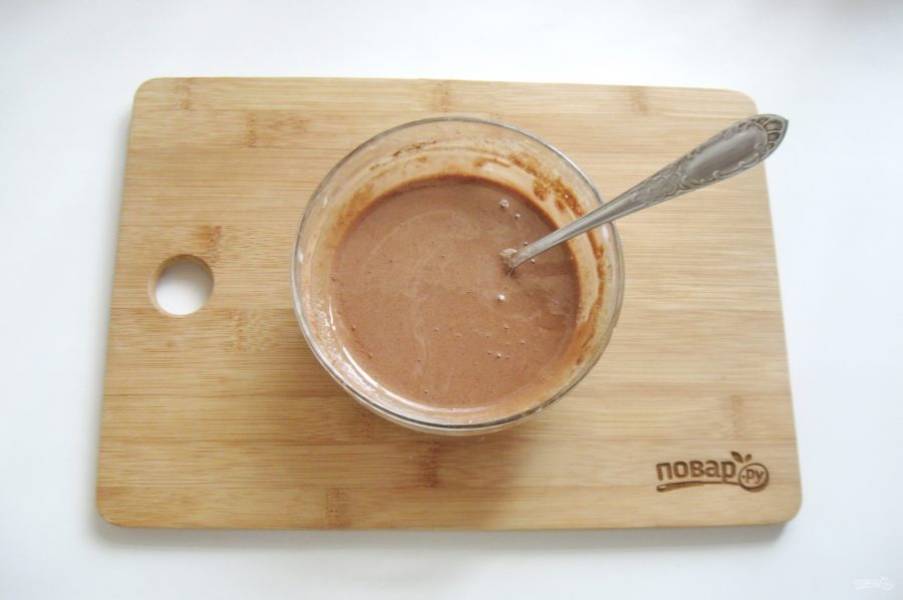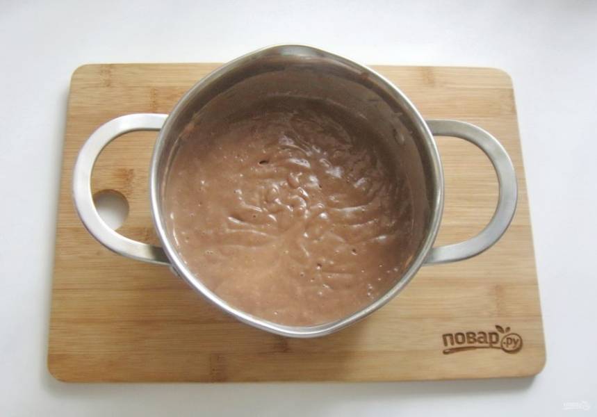 Когда молоко начнет закипать, влейте в него смесь желтков, сахара, какао и крахмала. Постоянно перемешивая, доведите крем до загустения. Крем охладите.