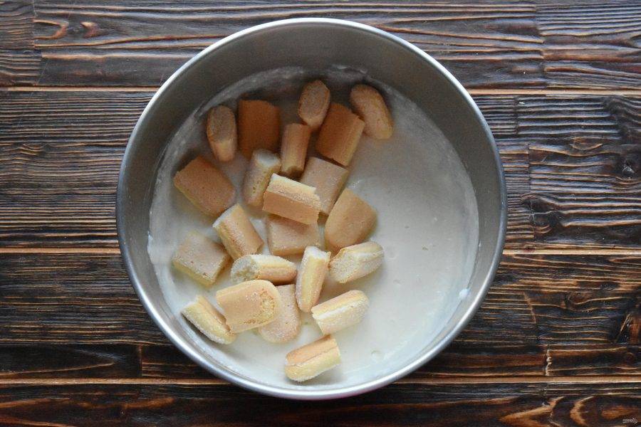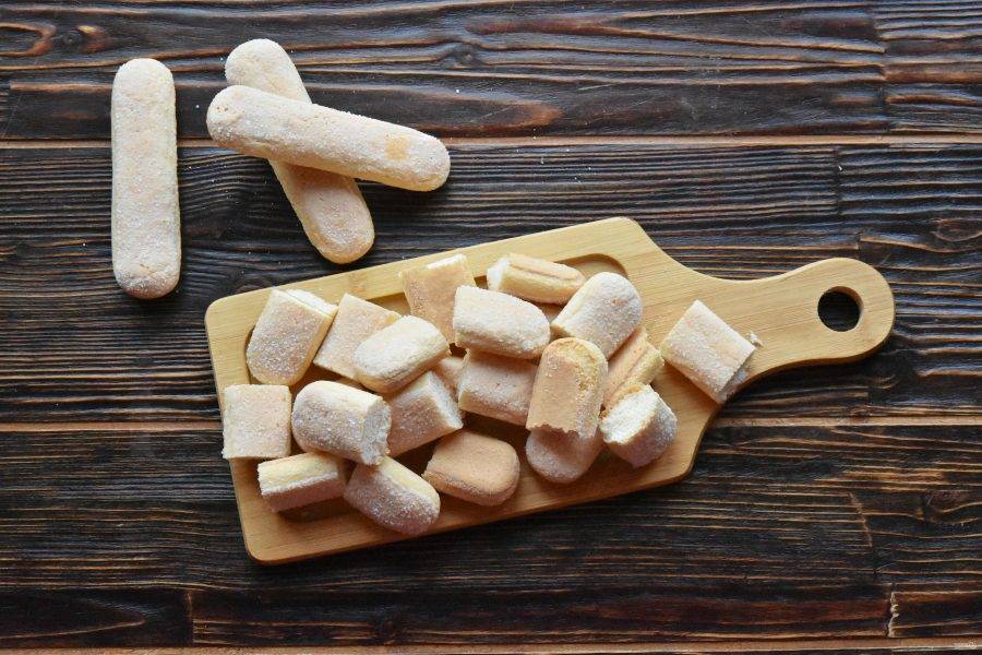 Печенье савоярди нарежьте на кусочки произвольного размера.
