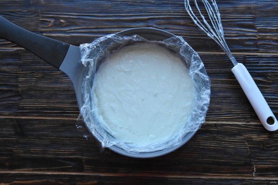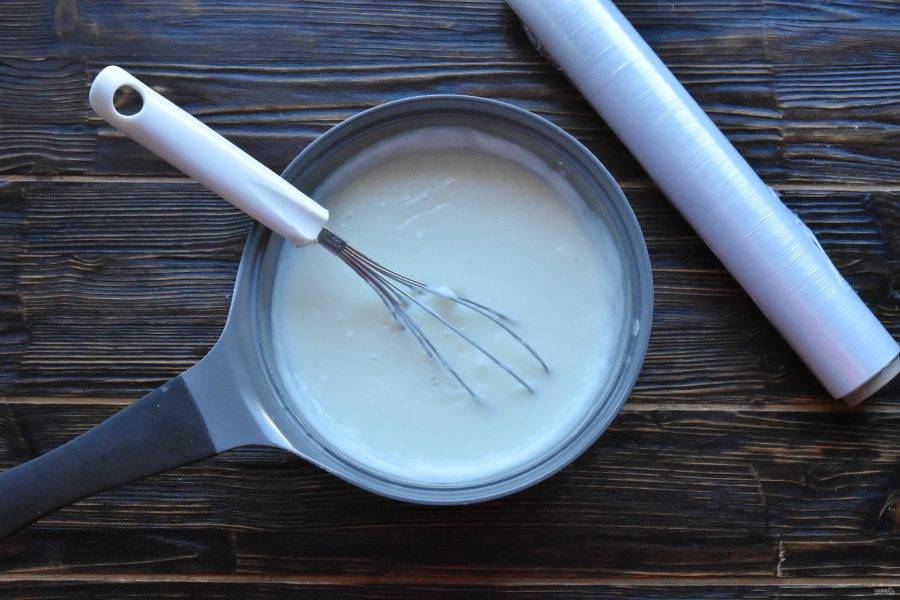 Снимите с огня сотейник. Накройте крем пищевой пленкой встык и полностью остудите.