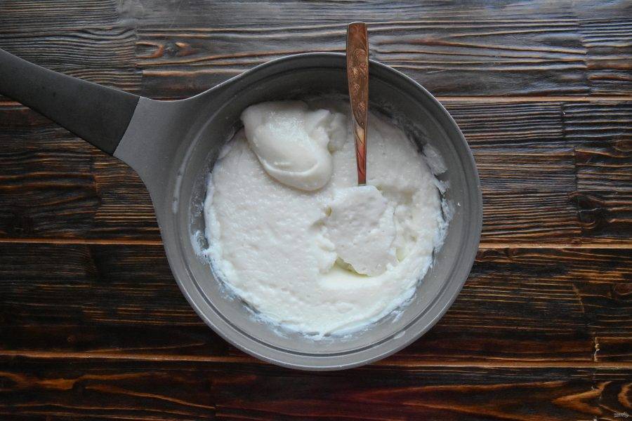 На медленном огне уварите смесь до загущения. Текстура заварного крема похожа на манную кашу.