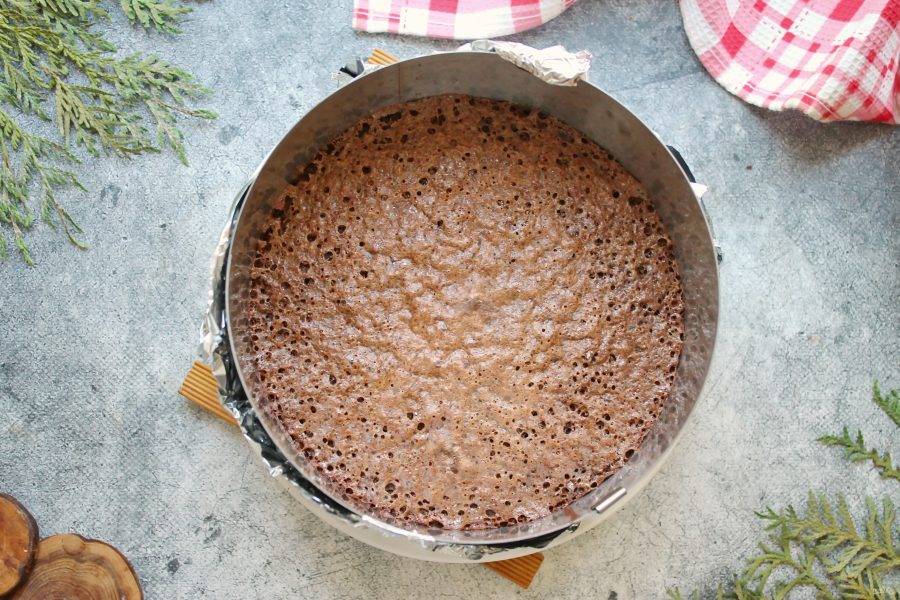 Форму диаметром 18 сантиметров смажьте растительным маслом, на дно выложите пергамент. Перелейте шоколадное тесто в форму, поставьте в горячую духовку и выпекайте при температуре 180 градусов в течение 30-45 минут, до готовности.