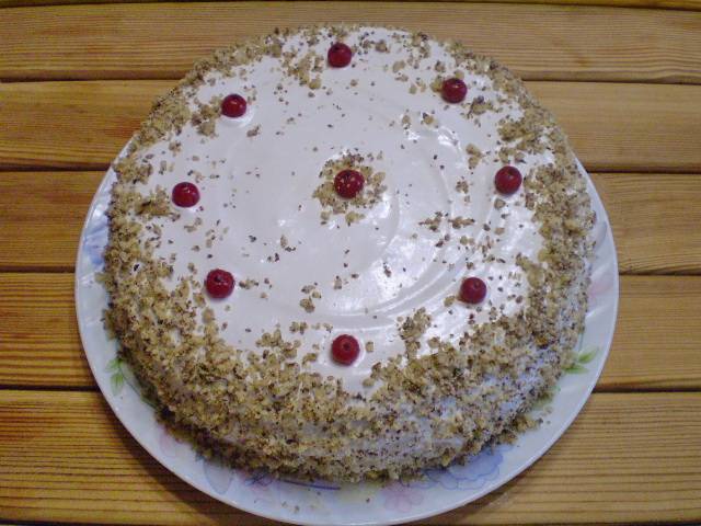 15. Обсыпаем толченными орехами. Украшаем ягодами.