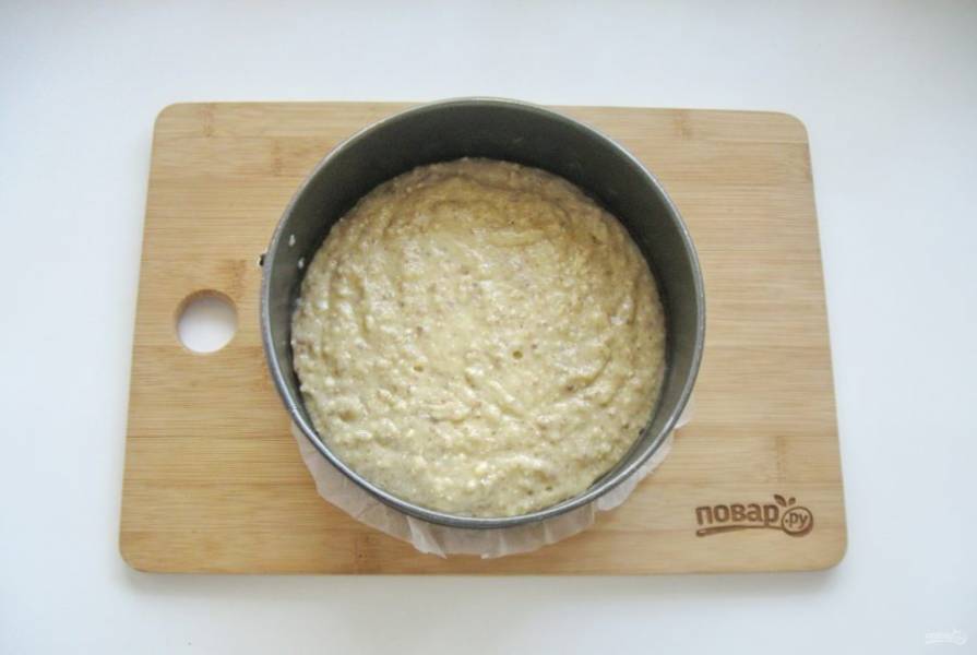 Выложите тесто в форму для выпечки с пергаментом.