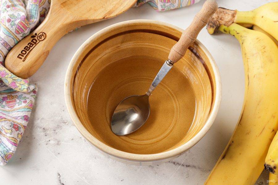 Желатин замочите в холодной воде и оставьте набухнуть. Если готовите с листовым желатином, то просто выложите листы в воду. Для гранулированного или порошкового желатина ищите пропорции с водой на упаковке (обычно на 1 порцию желатина необходимо 5 порций воды). Я добавила 50 мл.