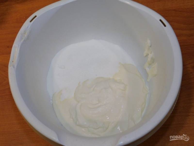 Для сметанного крема взбейте жирную сметану с сахарной пудрой.
