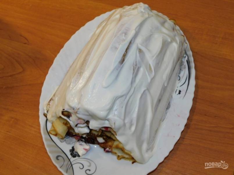 Сверху полейте торт растопленным шоколадом и поставьте в холодильник на 2-3 часа, чтобы он застыл.